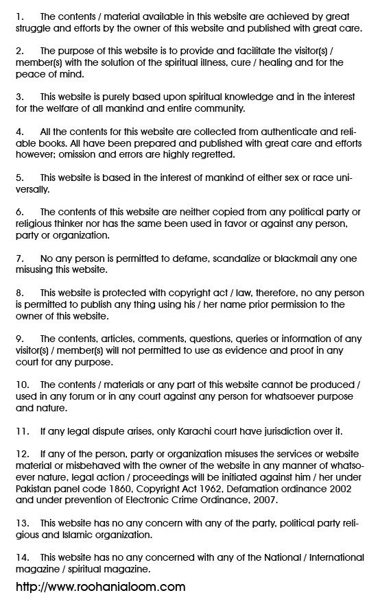 - یہ ویب سائٹ مکمل طور پر روحانی علوم پر مبنی ہے اور انسانیت اور معاشرے کی بھلائی کے لیے ہے۔